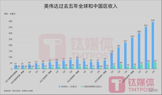 财报显示,在截至1月的2024自然年中,英伟达中国区年营收171.08亿美元(约合人民币1248.30亿元),为史上最高,比前一年103.06亿美元增长66%。