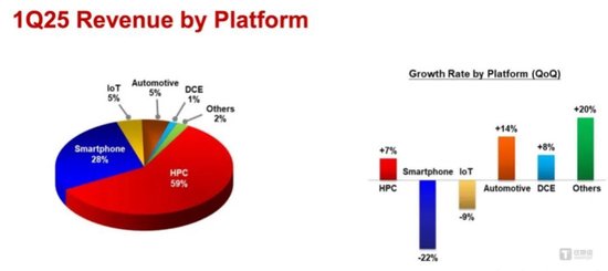 受智能手机处在淡季所影响,HPC(高性能计算)对台积电的业绩贡献已经不只是“半壁江山”,在第一季度其占总营收比重已达到59%,这背后主要包括AI训练和AI推理需求所驱动的全球AI基础设施投资高潮。